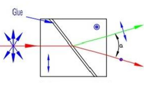 沃拉斯顿棱镜 可以将入射光束分离成两束光线:寻常光和非寻常光,其偏角取决于波长和切角,两束光线均穿过另一个表面。